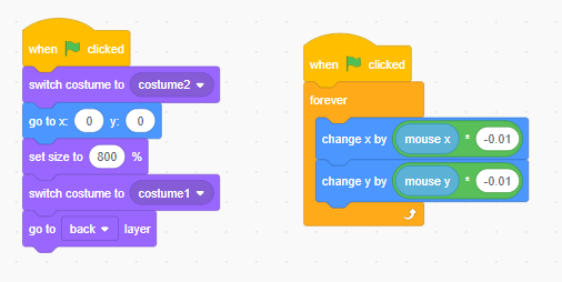 Kita akan membuat kode agar latar belakang grid kita membesar dan bergerak mengikuti pergerakan “player”. Ini akan memberikan efek dinamis pada permainan.